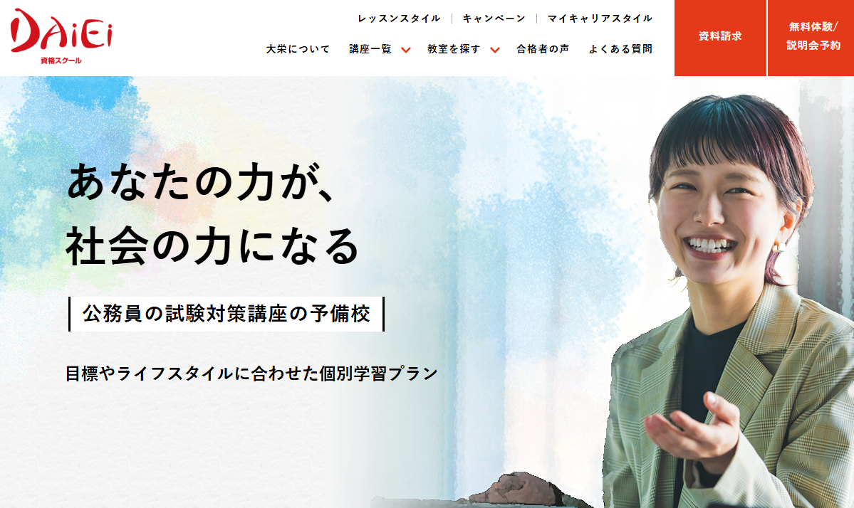 | 2位:資格の大栄 | ・専任パーソナルトレーナーによるサポート ・一人ひとりに合った学習計画 ・個別の質問対応 ・自己分析カウンセリングに基づく二次試験対策 |